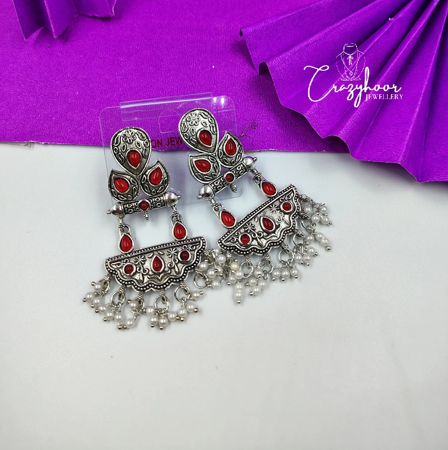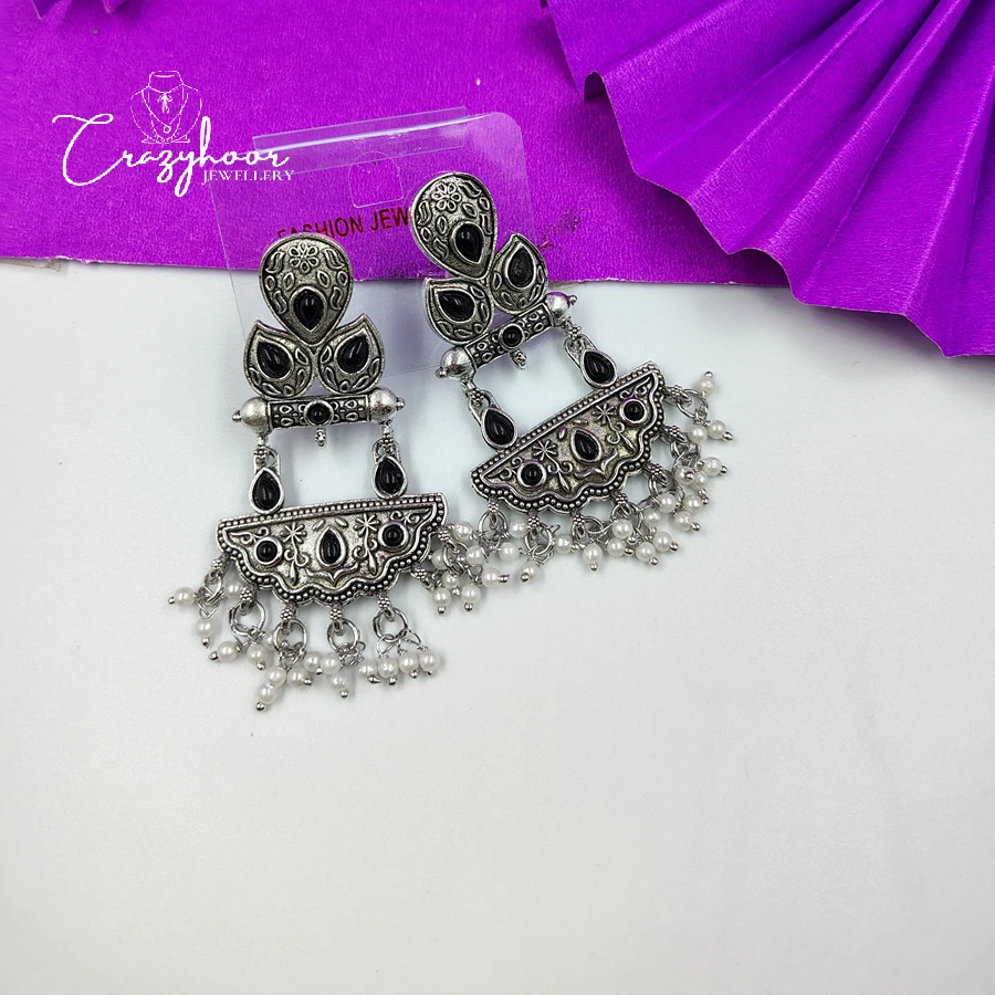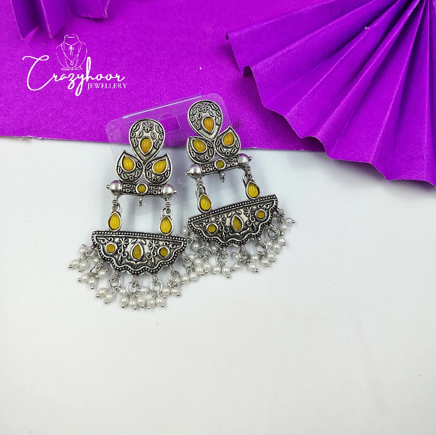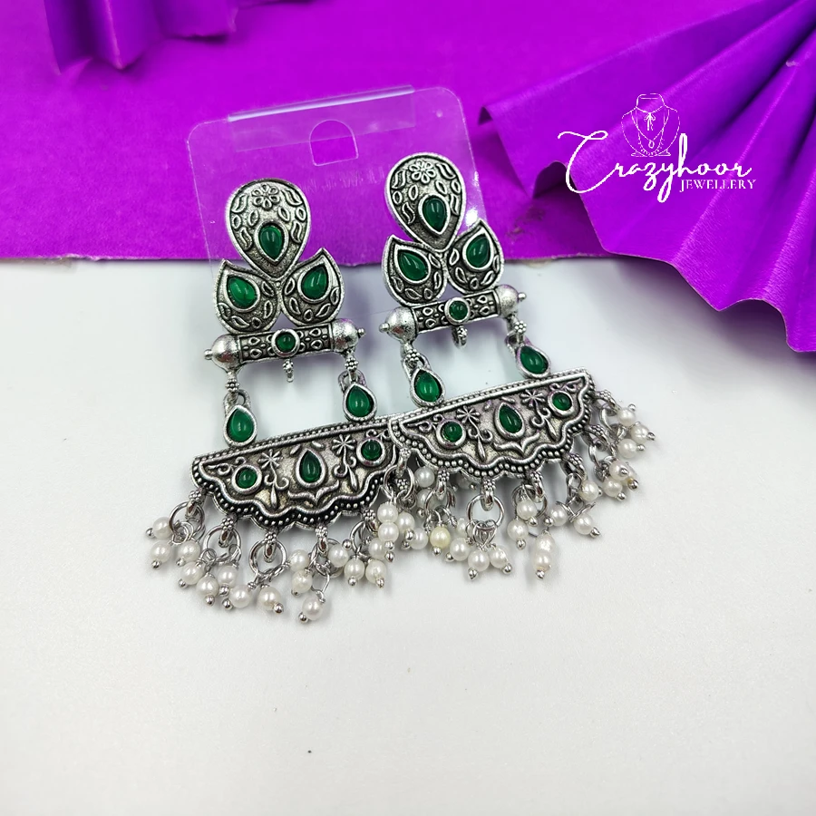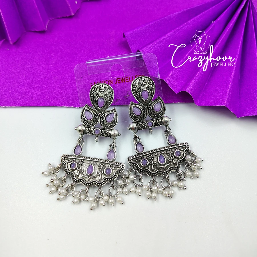 Add a royal touch to your look with our Monalisa Stone Silver Replica Brass Antique Look Earrings. Expertly handcrafted from premium quality brass and finished with an antique silver polish, these earrings feature the enchanting Monalisa stone – known for its soft glow and timeless elegance.