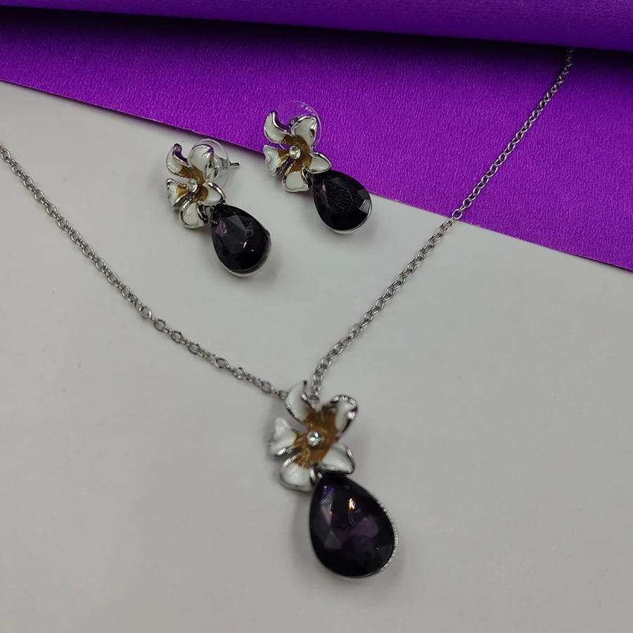 Silver & Rosegold Tone Floral high plating Jwellery set